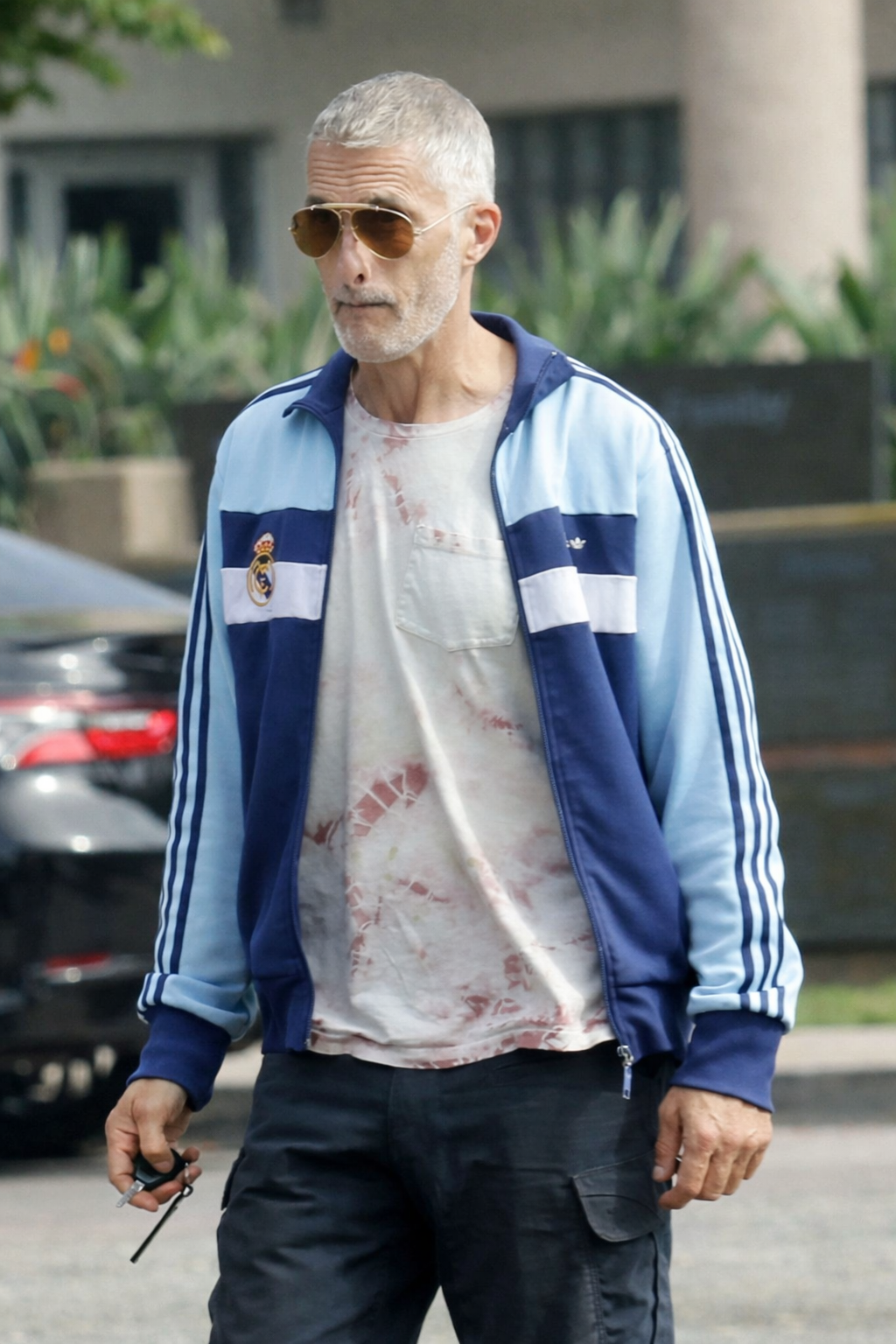 Recently, Martinez was spotted on the streets of Los Angeles, and it was hard to recognize the handsome Frenchman who once walked the red carpet alongside Berry. He has lost a significant amount of weight, traded his luxurious chestnut locks for a short gray haircut, and sported a three-day stubble. His casual look featured a faded tie-dye T-shirt, an Adidas sports jacket, cargo pants in an olive shade, and worn-out sneakers. He hid his eyes behind gold-framed aviator sunglasses.